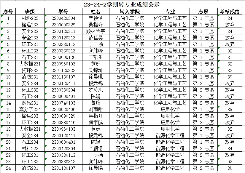 【教學】23-24-2學期轉(zhuǎn)專業(yè)成績公示