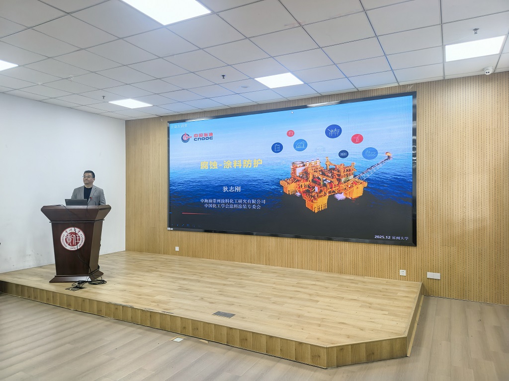 2025年12月18日,中海油常州涂料化工院腐蝕治理首席工程師狄志剛、涂料與防護工程研究院主任周如東應邀為我院師生作學術報告,石油化工學院黨委書記業(yè)緒華、院長劉平、學院骨干教師和研究生代表現(xiàn)場參會。報告會由劉平主持。