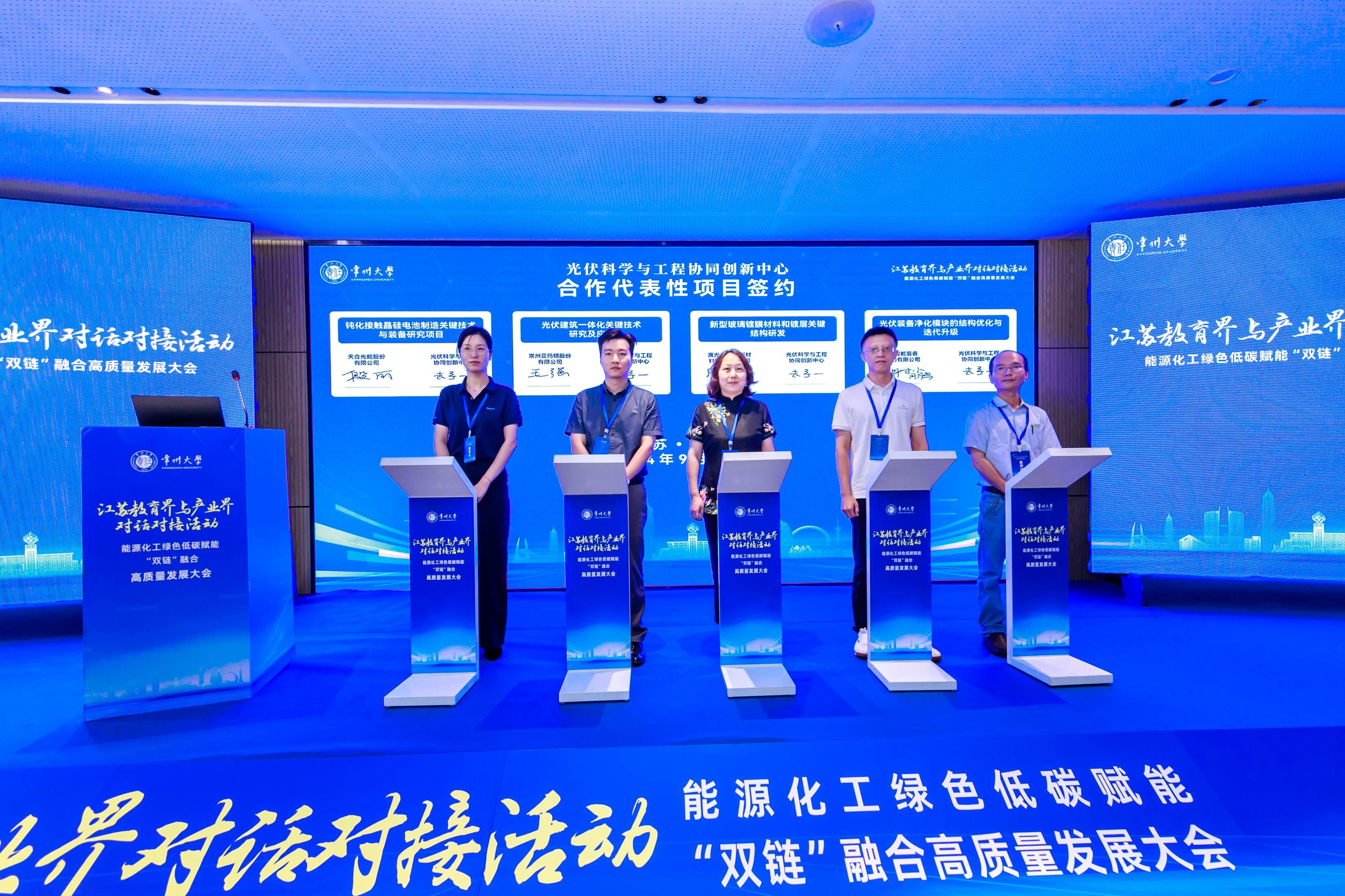 9月19-20日,由江蘇省教育廳指導(dǎo),常州大學(xué)主辦,江蘇省先進(jìn)催化與綠色制造協(xié)同創(chuàng)新中心(簡稱“催化協(xié)同中心”)、江蘇省光伏科學(xué)與工程協(xié)同創(chuàng)新中心(簡稱“光伏協(xié)同中心”)聯(lián)合承辦的江蘇教育界與產(chǎn)業(yè)界對話對接活動——能源化工綠色低碳賦能“雙鏈”融合高質(zhì)量發(fā)展大會在常州大學(xué)金壇教育科創(chuàng)園舉行。