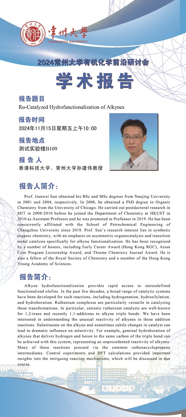 【學術(shù)報告】11月15日學術(shù)報告—孫建偉教授 香港科技大學、常州大學