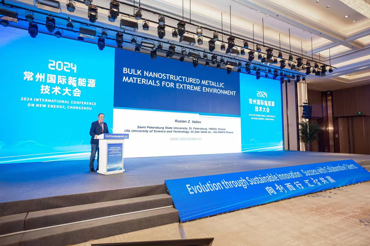 11月3日-5日,2024常州國際新能源技術(shù)大會在常州舉行。作為第22屆中國國際人才交流大會江蘇分會場活動,此次會議由常州大學(xué)主辦,江蘇省教育廳、江蘇省科學(xué)技術(shù)廳、江蘇省科學(xué)技術(shù)協(xié)會指導(dǎo),并得到了常州市委人才工作領(lǐng)導(dǎo)小組辦公室、常州市科學(xué)技術(shù)局、常州市科學(xué)技術(shù)協(xié)會、中國再生資源產(chǎn)業(yè)技術(shù)創(chuàng)新戰(zhàn)略聯(lián)盟、江蘇省對外科技促進(jìn)會和江蘇省海外人才創(chuàng)新創(chuàng)業(yè)聯(lián)盟等多個單位的支持。 江蘇省科學(xué)技術(shù)協(xié)會二級巡視員楊文新,江蘇省教育廳對外合作與交流處副處長汝益仙,江蘇省科學(xué)技術(shù)廳人才處副處長陳利琴,常州市人民政府副市長蔣鵬舉,常州市政府外事辦副主任沈煉,常州科學(xué)技術(shù)局副局長陸,常州市科協(xié)主席任洪興,中國-東盟信息港股份有限公司高級副總裁吳玉青,世界綠色設(shè)計組織總干事邢雷,國家人才計劃入選者、北京科技大學(xué)教授莊林忠,新西蘭皇家科學(xué)院/工程院院士、奧克蘭大學(xué)高唯,歐洲科學(xué)院院士、烏法科技大學(xué)魯斯蘭·瓦列耶夫,皇家愛丁堡學(xué)會院士、倫敦瑪麗女王大學(xué)馬克·布拉德利,韓國國家工程院/科學(xué)技術(shù)翰林院院士、浦項科技大學(xué)金炯燮,中國政府友誼獎獲得者、俄羅斯烏法科技大學(xué)教授伊格·亞歷山卓夫,NanoSPD國際組織副主席、美國科羅拉多礦業(yè)大學(xué)特里·柯蒂斯·洛,烏法科技大學(xué)校長瓦金·扎哈羅夫,烏法科技大學(xué)副校長麗塔·菲利波娃,泰國瓦萊嵐大學(xué)副校長素威特·武提蘇提米塔維,香港恒生大學(xué)副校長梁偉強(qiáng),馬來西亞拿督,東盟教育聯(lián)合會會長謝嘉平,澳大利亞迪肯大學(xué)實驗室主任利瑪·拉波伏等來自16個國家和地區(qū)的64位外籍專家學(xué)者,以及常州市科學(xué)術(shù)協(xié)會、企業(yè)家代表200余人參加專場會議。常州大學(xué)黨委書記徐守坤,副校長王建浦,黨委常委、副校長李忠玉,黨委常委、副校長李亞飛,副校長晏成林,黨委常委、組織部部長秦義出席會議。常州大學(xué)相關(guān)職能部門和學(xué)院負(fù)責(zé)人參加會議。王建浦主持大會開幕式。