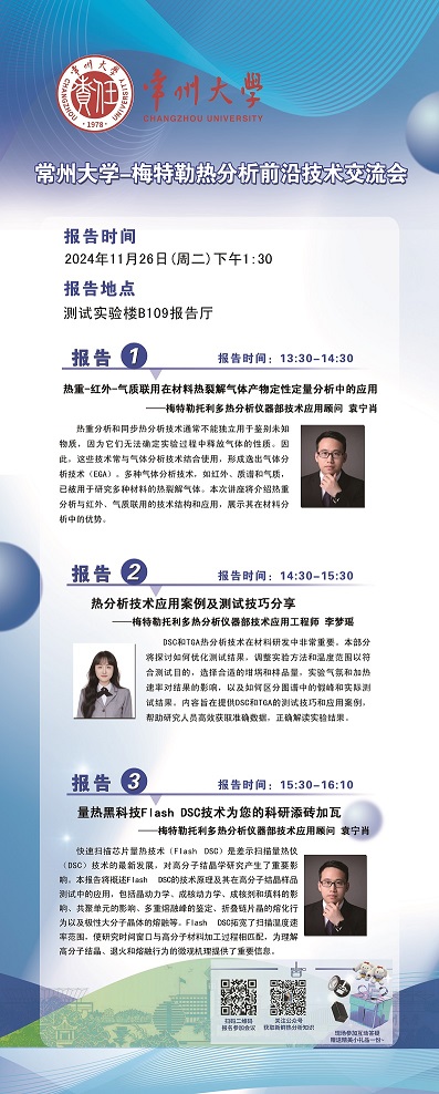 | 【學(xué)術(shù)報告】11月26日學(xué)術(shù)報告—常州大學(xué)-梅特勒熱分析前沿技術(shù)交流會 |