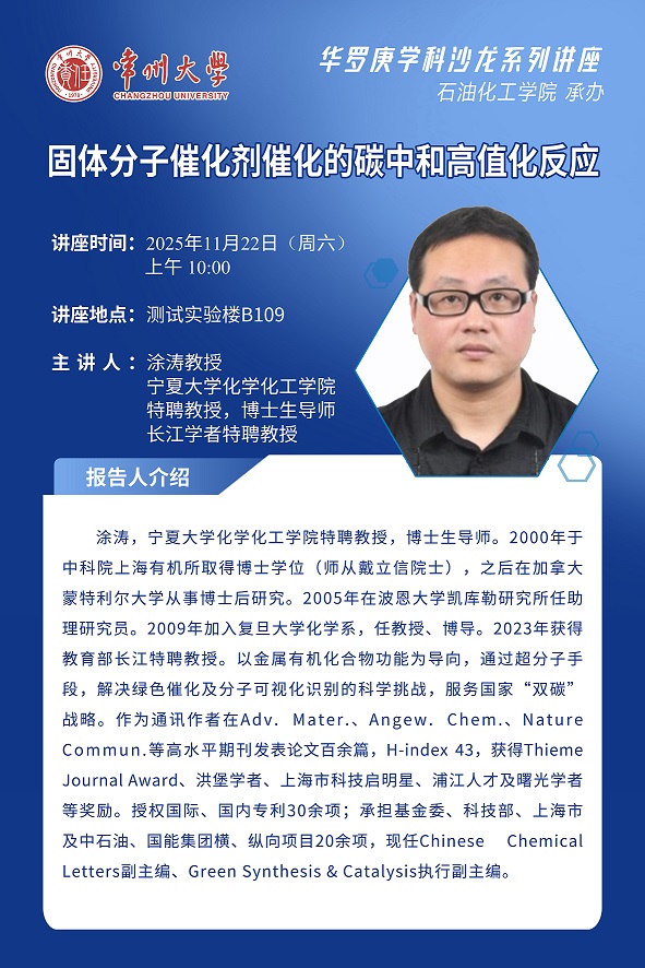 | 【學(xué)術(shù)報(bào)告】11月22日學(xué)術(shù)報(bào)告——賈義霞教授 天津理工大學(xué) 涂濤教授 寧夏大學(xué) |