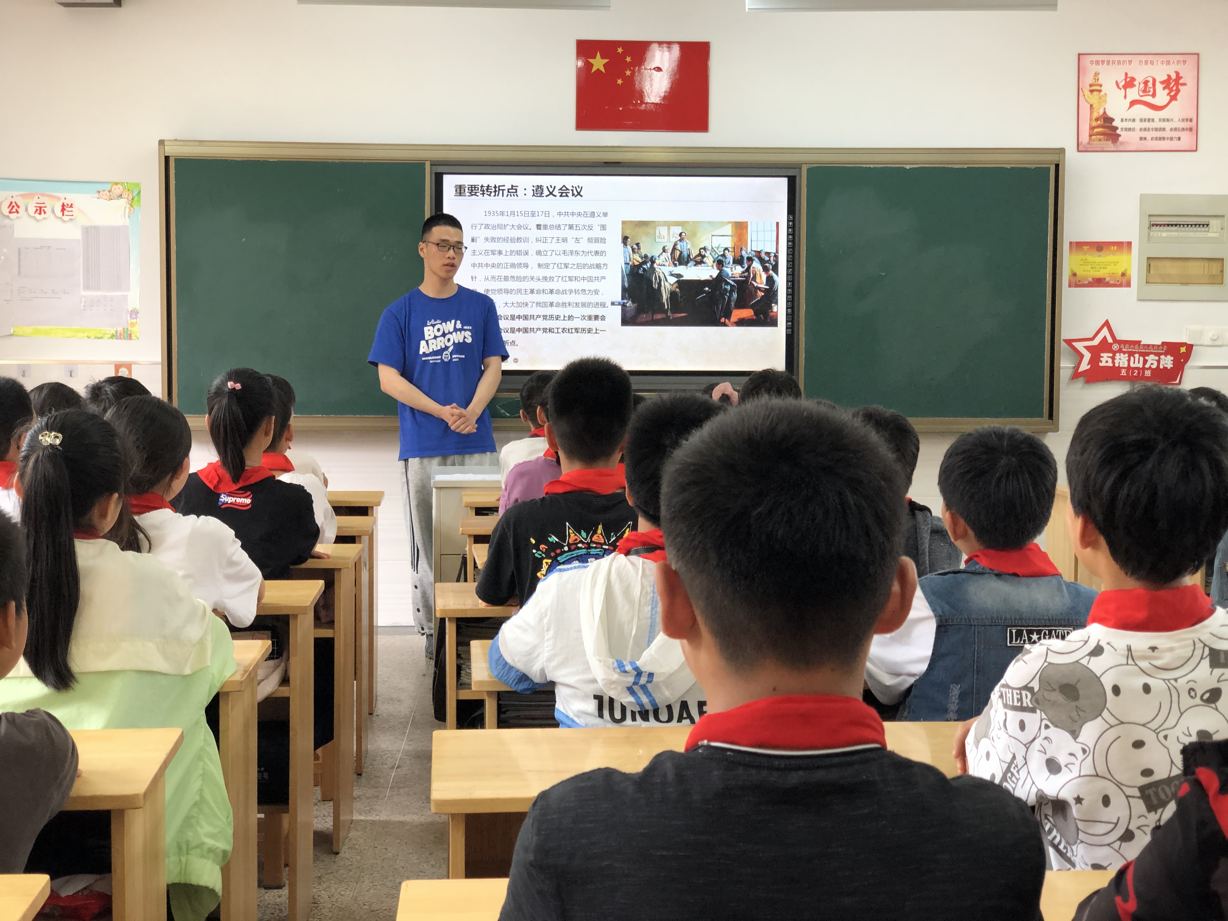 為宣傳紅色黨史、普及誠信教育,6月4日下午兩點,常州大學石油化工學院食品學院與材料工程學院志愿者們?yōu)槿嗣衤沸W五年級(3)班的同學們開展“銘黨史、講誠信、守初心”志愿宣講活動,