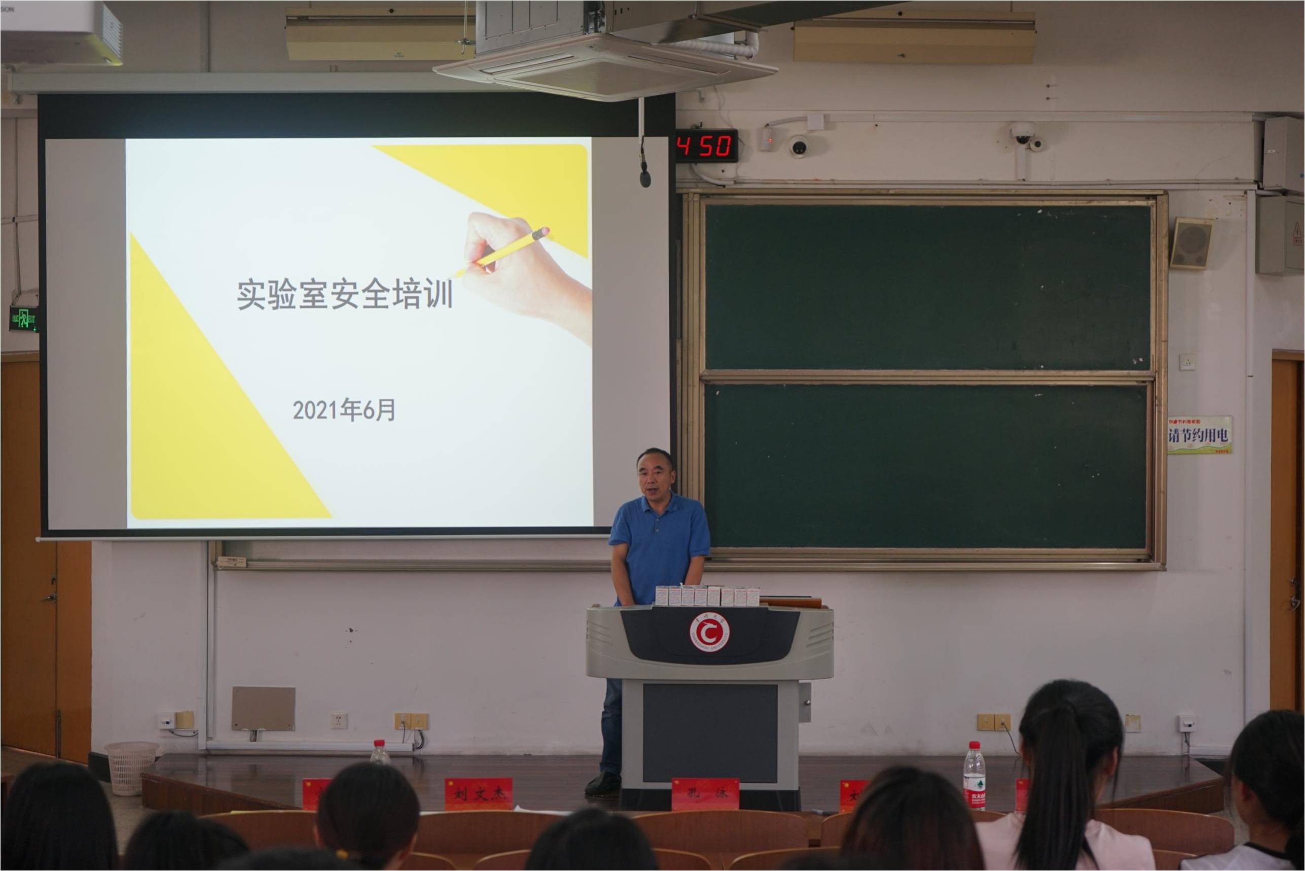 本次答辯分為PPT陳述和評(píng)委提問(wèn)兩個(gè)環(huán)節(jié)。評(píng)委老師認(rèn)真聽(tīng)取了各個(gè)項(xiàng)目的匯報(bào),并提出問(wèn)題和建議。答辯結(jié)束后,周永南老師為今年新立項(xiàng)的創(chuàng)新基金項(xiàng)目成員做實(shí)驗(yàn)室安全教育培訓(xùn)。