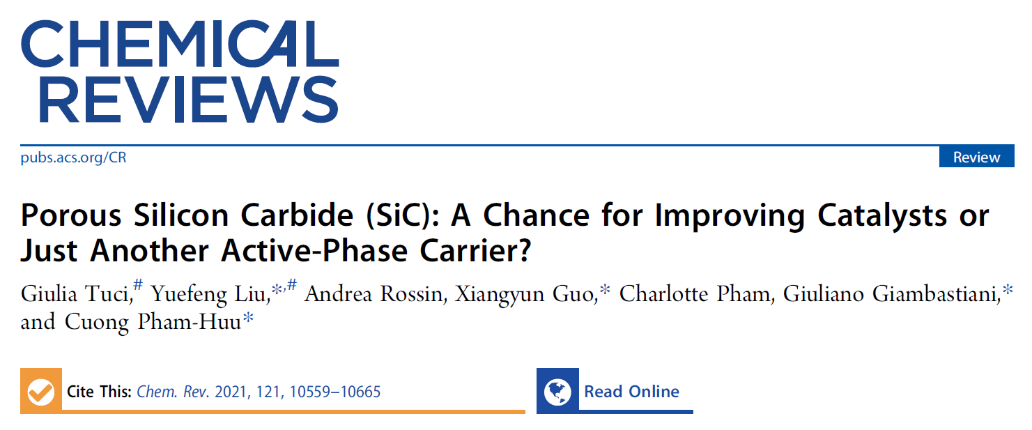 近日,郭向云教授應(yīng)邀與意大利國家研究委員會(huì)、中科院大連化學(xué)物理研究所、SICAT公司、法國國家科研中心等研究人員合作撰寫的關(guān)于高比表面積碳化硅催化應(yīng)用的綜述文章“Porous Silicon Carbide (SiC): A Chance for Improving Catalysts or Just Another Active-Phase Carrier?”在化學(xué)領(lǐng)域國際頂級綜述類雜志Chemical Reviews上作為封面文章發(fā)表。該論文系統(tǒng)地介紹了碳化硅作為催化劑載體在催化領(lǐng)域中的應(yīng)用情況:(1)精細(xì)化學(xué)品合成,如烷烴氧化制烯烴和含氧化合物、不飽和鍵加氫、C-X鍵形成等;(2)燃料制備,如各種液體燃料、天然氣和氫氣;(3)環(huán)境保護(hù)和修復(fù),如水和空氣中有機(jī)污染物的氧化脫除及分解;(4)燃料電池催化劑,如甲醇和乙醇的電氧化、氧氣還原等;(5)光催化過程,如光解水產(chǎn)氫、精細(xì)化學(xué)品光催化合成、有機(jī)污染物降解等;(6)碳化硅復(fù)合物無金屬催化劑等。并就碳化硅催化劑研究中應(yīng)該關(guān)注的重點(diǎn),以及未來發(fā)展趨勢作了展望。