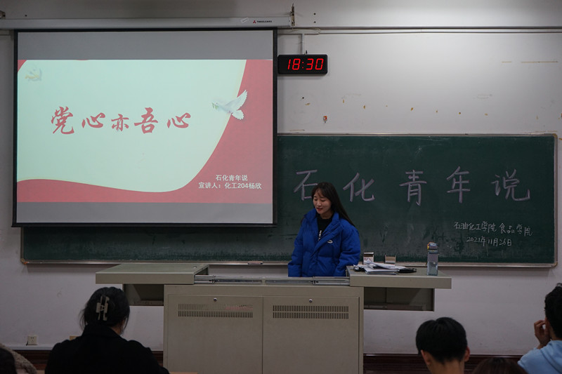 為營(yíng)造學(xué)習(xí)先進(jìn)、崇尚先進(jìn)的良好氛圍,深入落實(shí)黨史學(xué)習(xí)教育,增強(qiáng)廣大學(xué)生的使命感和責(zé)任感,11月25日18:30,我院在w1206開展先進(jìn)人物事跡分享會(huì)。本次分享會(huì)由化工204楊欣主講。