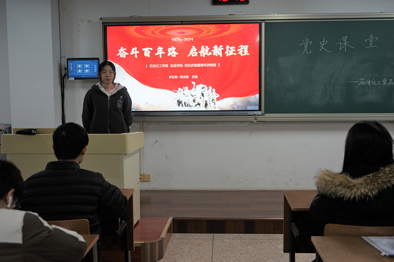 為貫徹落實(shí)習(xí)近平總書(shū)記關(guān)于黨史學(xué)習(xí)教育的重要論述,充分發(fā)揮“青年講師團(tuán)”理論武裝“輕騎兵”的作用,把黨的科學(xué)理念在青年中落實(shí),12月1日18:30,我院在W2312教室開(kāi)展以“奮斗百年路,啟航新征程”為主題的四史講堂。本次四史講堂由青年講師團(tuán)成員石婧主持。