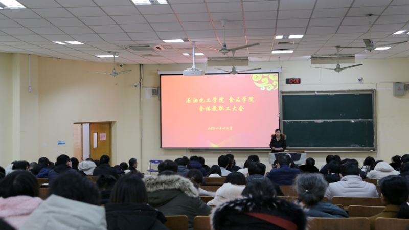 2021年12月30日,石油化工學(xué)院 食品學(xué)院分工會召開全院教職工大會。會議總結(jié)了學(xué)院2021年的整體工作,著重就學(xué)期末、假期中、開學(xué)初的重點工作做了部署。正值2021歲末,學(xué)院領(lǐng)導(dǎo)為全院職工帶來祝福,祝愿新的一年大家共同努力、共同進(jìn)步!