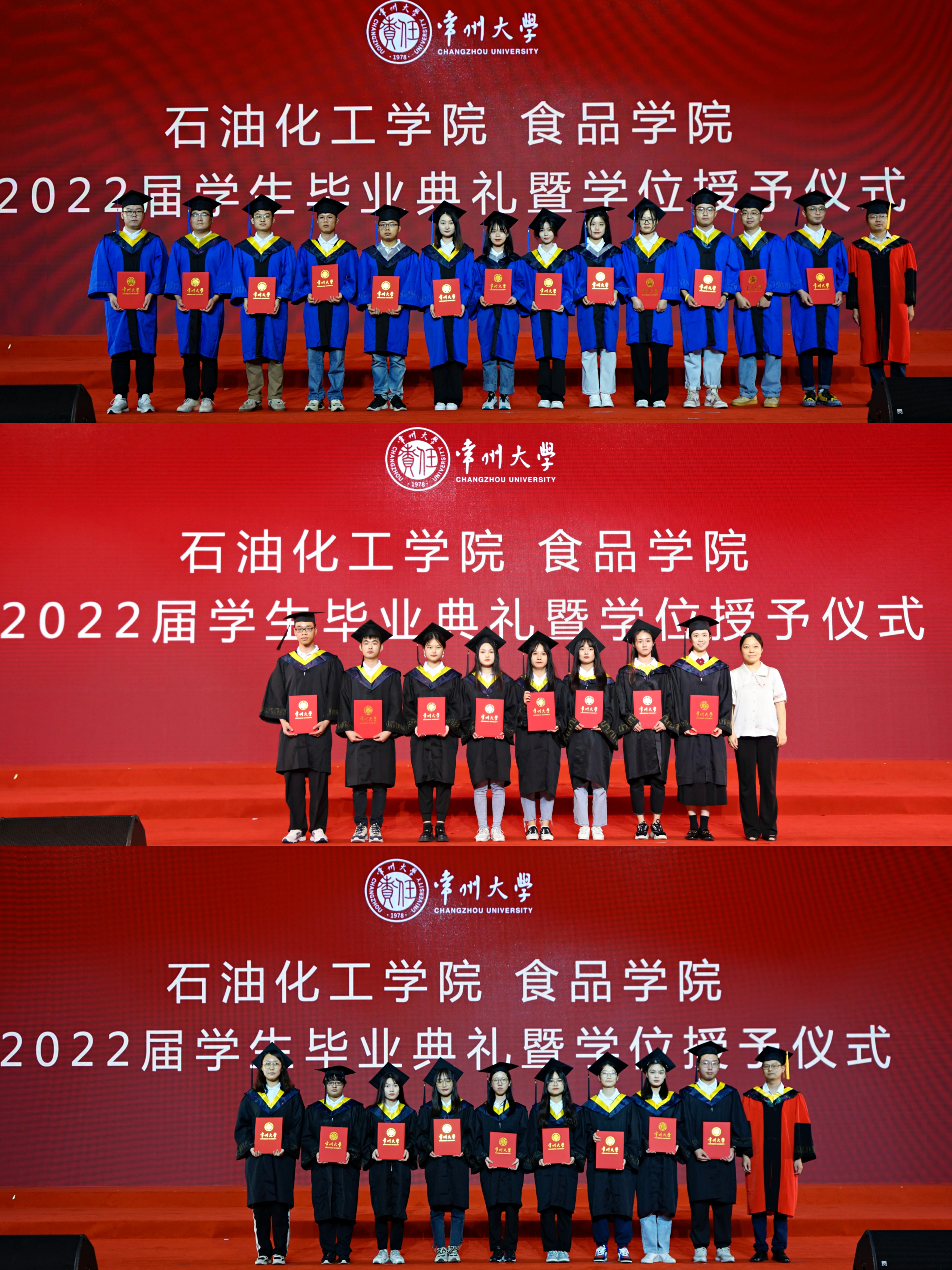 “四年師友昨日成追憶,千里之行今朝正起航?!碑厴I(yè)小劇場(chǎng)環(huán)節(jié),優(yōu)秀畢業(yè)生展示了他們青春的風(fēng)采,歌曲串燒點(diǎn)燃了大家的熱情,詩(shī)朗誦《夢(mèng)駐芳華,云憶石化》傾訴了對(duì)母校的不舍。最后,全體畢業(yè)生揮舞雙手,合唱畢業(yè)歌《仍是石化少年》,所有的留戀、感激、祝福、憧憬和期盼都蘊(yùn)藏在歌詞旋律中。祝福2022屆畢業(yè)生前程似錦。