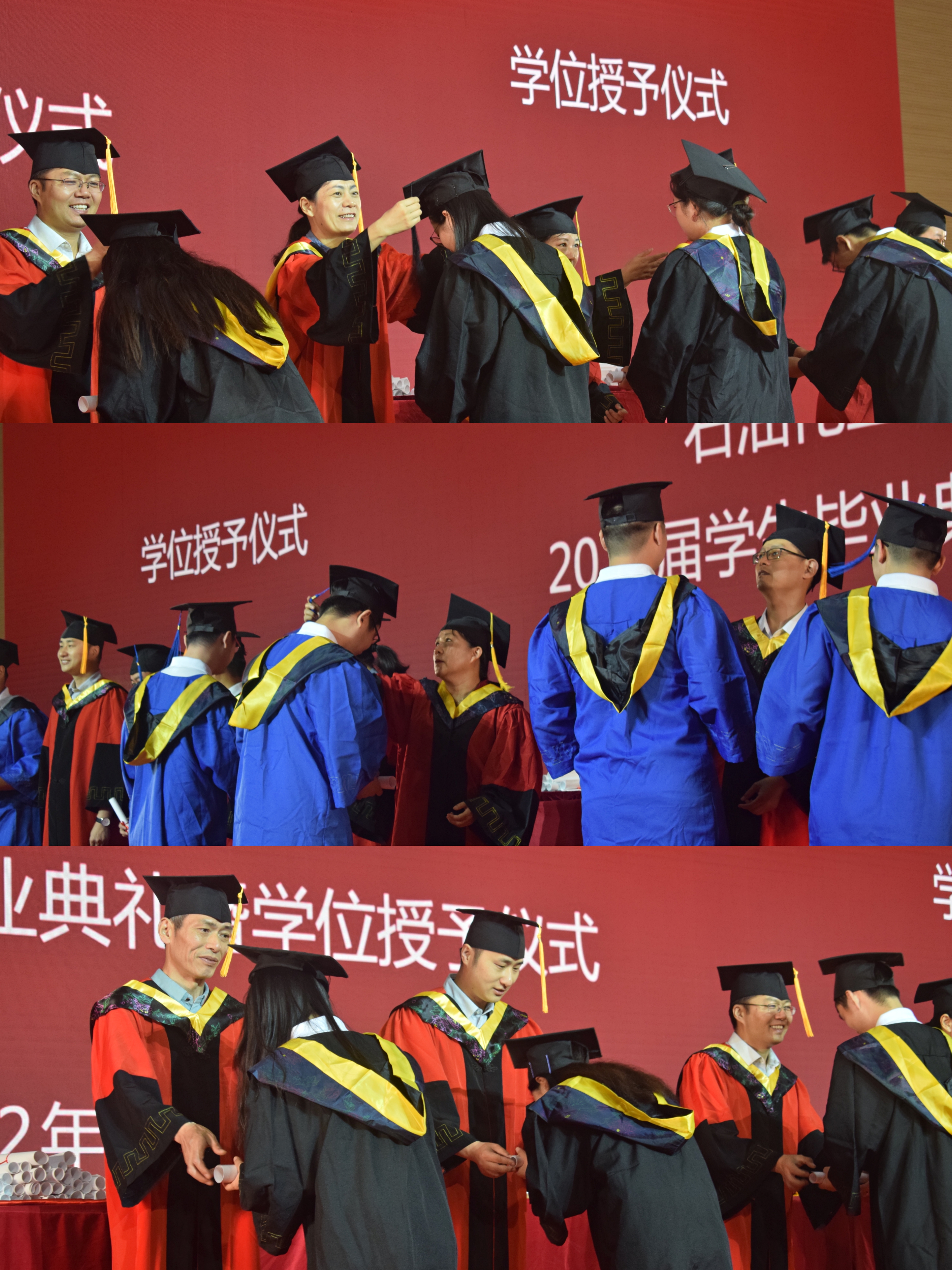 學(xué)位授予儀式上學(xué)位委員會(huì)成員為畢業(yè)生們撥穗正冠,院長(zhǎng)鐘璟代表全體教師對(duì)畢業(yè)生們表達(dá)了殷切的祝福,愿同學(xué)們面向未來,矢志奮斗、行而不輟;堅(jiān)定目標(biāo)、勇往直前;傳承創(chuàng)新、勇闖新路。