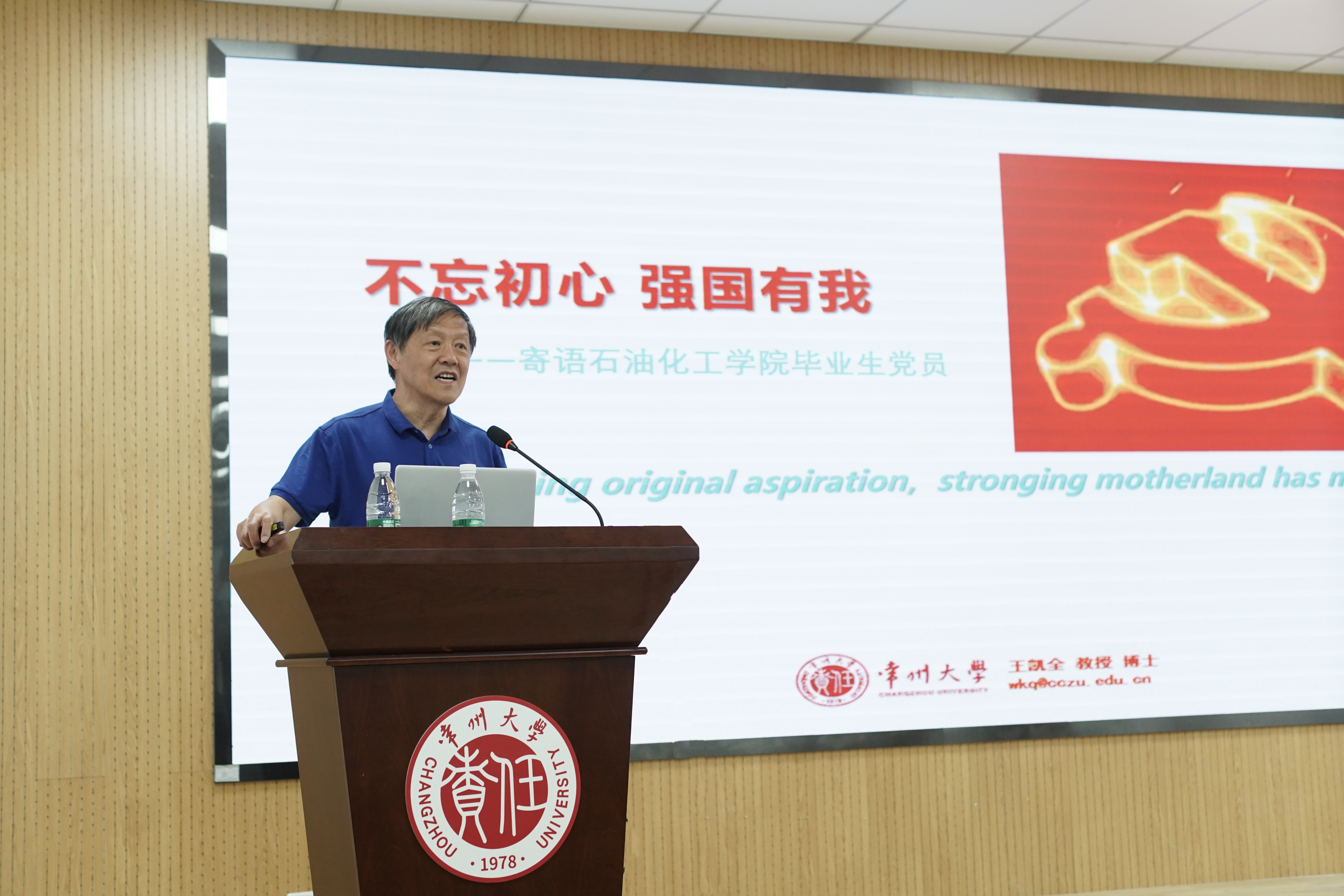 王凱全以求學(xué)歷程為時(shí)間線,首先帶領(lǐng)黨員們重溫了當(dāng)年初心,回顧了大學(xué)前定下的目標(biāo)、求學(xué)的意義和價(jià)值;接著以三個(gè)角色帶領(lǐng)大家審視了大學(xué)期間的成果,一是作為學(xué)生,收獲了知識(shí)能力素養(yǎng);二是作為黨員,堅(jiān)定了政治信仰,強(qiáng)化了服務(wù)意識(shí)和奮斗精神;三是即將踏入社會(huì)的成年人,收獲了更多的責(zé)任。隨后,王凱全向黨員們闡釋了“勇?lián)?zé)任,追求卓越”學(xué)校精神的內(nèi)涵,希望同學(xué)們能夠從常州大學(xué)艱辛發(fā)展的歷程中汲取力量,認(rèn)清眼前世界,牢記責(zé)任校訓(xùn),在自己的領(lǐng)域做出成績(jī),能夠驕傲地說(shuō)出“強(qiáng)國(guó)有我”。最后,王凱全寄語(yǔ)畢業(yè)生黨員:要常懷感恩之心,不忘來(lái)時(shí)夢(mèng)想,堅(jiān)持終身學(xué)習(xí),勇對(duì)挫折困苦,淬煉健康身心,要將今后的路走穩(wěn)走實(shí)。