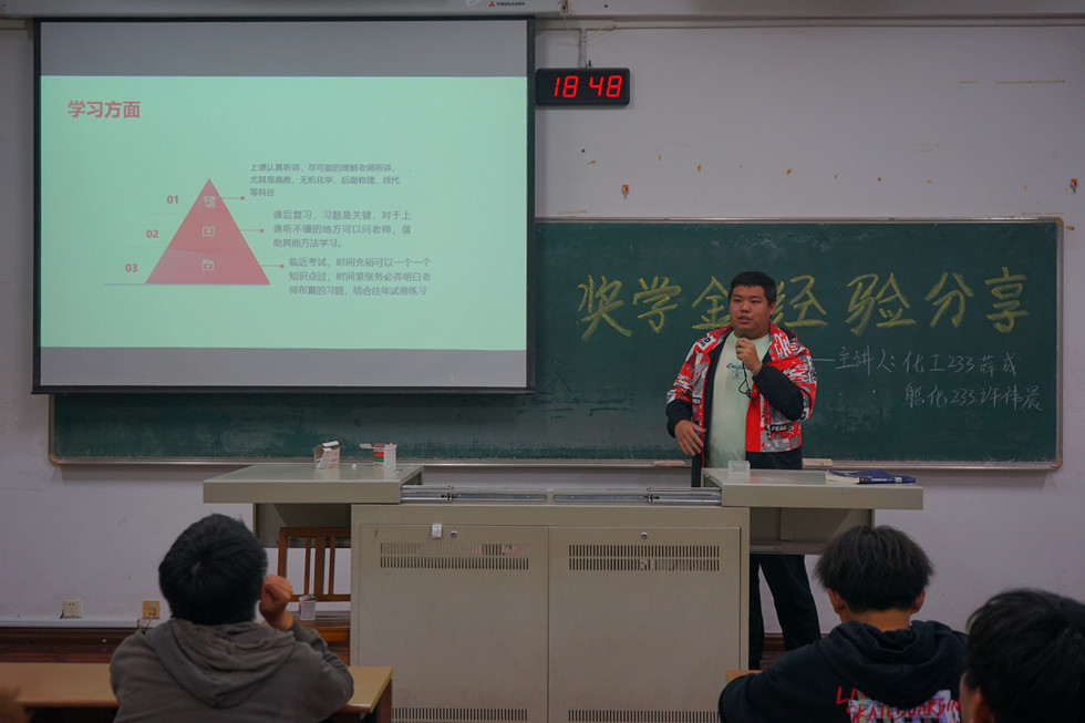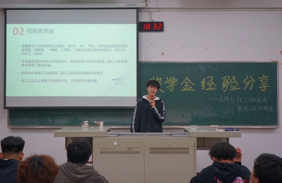 為全面宣傳普及高校獎(jiǎng)學(xué)金政策,鼓勵(lì)學(xué)生力求上進(jìn),勇?tīng)?zhēng)上游,加強(qiáng)學(xué)院學(xué)風(fēng)建設(shè),我院于10月22日在W1206教室開(kāi)展“石化青年說(shuō)”系列講座第一講——獎(jiǎng)學(xué)金經(jīng)驗(yàn)分享。本次講座由化工233薛成和能化233許偉晨主講,學(xué)生代表參加。