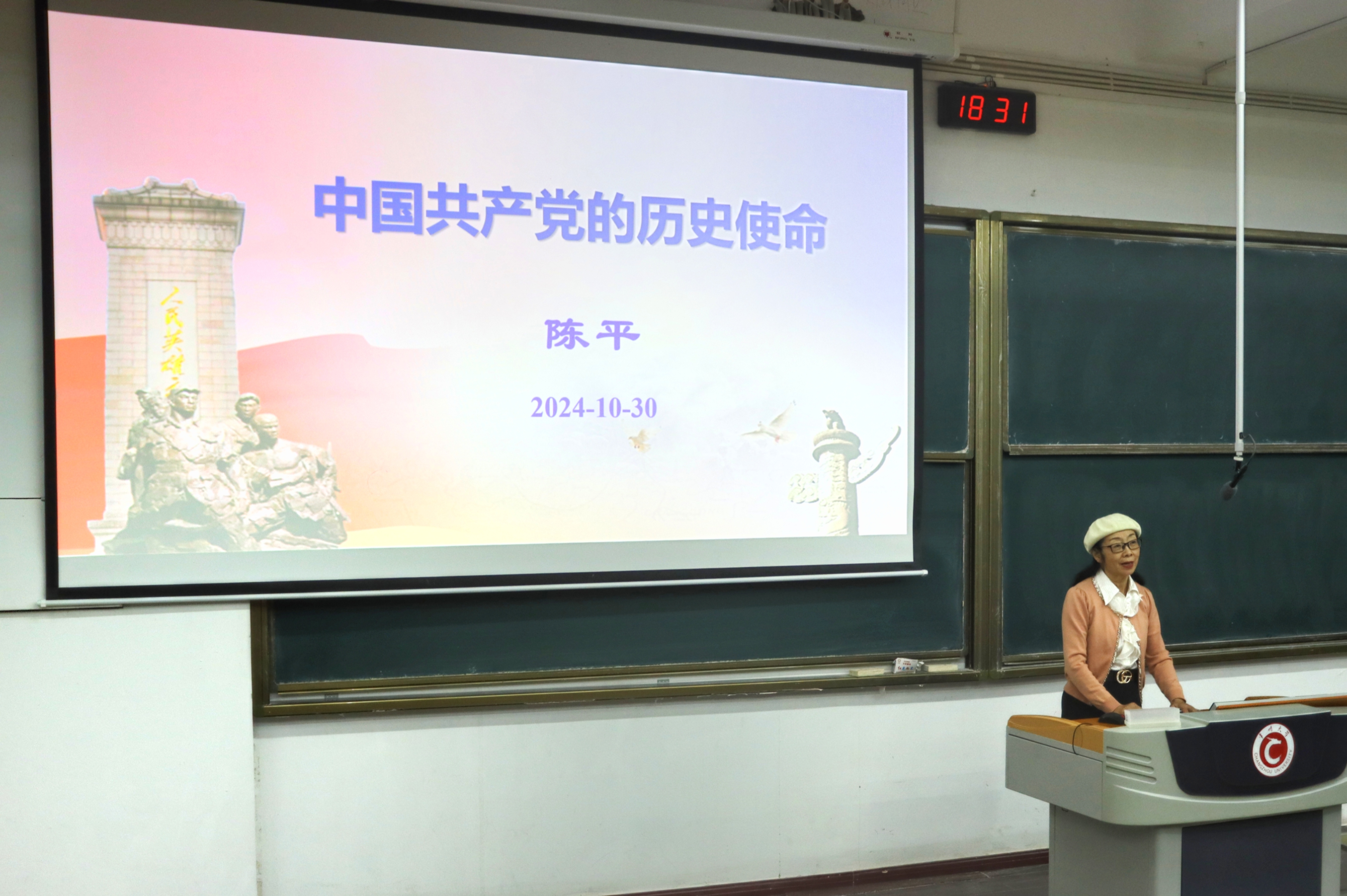陳平以《中國共產(chǎn)黨的歷史使命》為主題為學(xué)員們授課,從中國共產(chǎn)黨誕生的歷史背景、近代中國社會的現(xiàn)實要求和中國人的家國情懷等方面闡釋了中國共產(chǎn)黨承擔(dān)歷史使命的必然性;從中國共產(chǎn)黨歷史使命的特征、中國共產(chǎn)黨百年奮斗歷程、新時代中國共產(chǎn)黨的歷史使命、做黨的使命堅定擔(dān)當者四個維度講述了中國共產(chǎn)黨實現(xiàn)歷史使命的艱巨性。最后,陳平寄語學(xué)員們,要努力奮斗,爭取早日加入中國共產(chǎn)黨,在黨的領(lǐng)導(dǎo)下,承擔(dān)歷史使命,為人民幸福和國家復(fù)興作出貢獻。