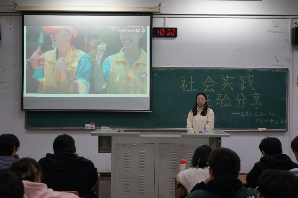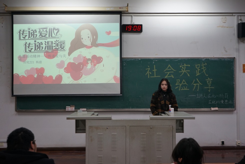為了增強(qiáng)學(xué)生對(duì)社會(huì)實(shí)踐的興趣,培養(yǎng)學(xué)生無(wú)私奉獻(xiàn)、關(guān)愛他人的精神,我院于11月19日在W1209開展“石化青年說(shuō)”系列講座第三講——社會(huì)實(shí)踐經(jīng)驗(yàn)分享。本次講座由應(yīng)化221楊蔚、應(yīng)化231黃思雨主講,我院學(xué)生代表參加。