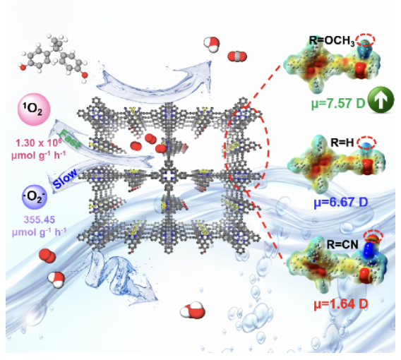 ,使其在雙酚A(BPA)降解方面展現(xiàn)出革命性的高效性,分別在短短2分鐘便能將10 ppm及20分鐘內(nèi)將100 ppm的BPA徹底降解為無害物質(zhì)。此外,光催化過氧化氫(H2O2)的生成效率在無任何添加劑下同樣達到令人矚目的987 μmol g-1 h-1。該研究以題為“Selective Oxygen Activation by Integrating Dual Photosensitizers in Conjugated Porous Polymers and Microenvironments Manipulation for High-performance Water Purification and H2O2 Production”的論文發(fā)表在國際頂級期刊《Advanced Functional Materials》上(Adv. Funct. Mater. 2024, 2419010)。