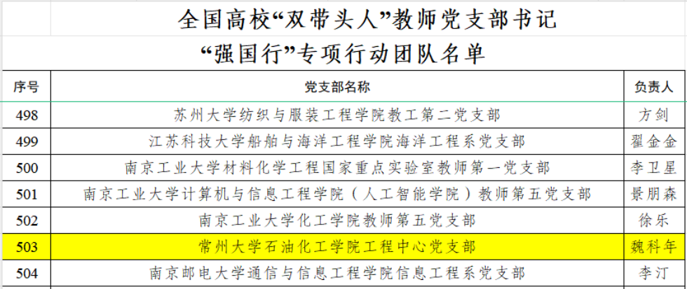 近日,教育部辦公廳、省委教育工委分別公布了全國、全省高校“雙帶頭人”教師黨支部書記“強(qiáng)國行”專項(xiàng)行動團(tuán)隊名單。我校石油化工學(xué)院工程中心黨支部成功入選全國高校“雙帶頭人”教師黨支部書記“強(qiáng)國行”專項(xiàng)行動團(tuán)隊。