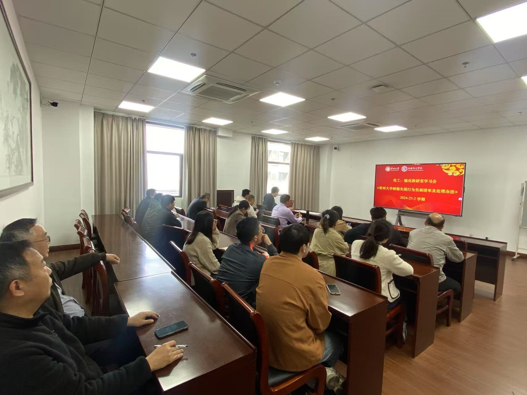 為進(jìn)一步提高教師職業(yè)道德水平,加強(qiáng)師德師風(fēng)建設(shè),2025年3月24日,我院化工、能化教研室集體學(xué)習(xí)《常州大學(xué)師德失范行為負(fù)面清單及處理辦法》,化工教研室、能化教研室教師參加會(huì)議。