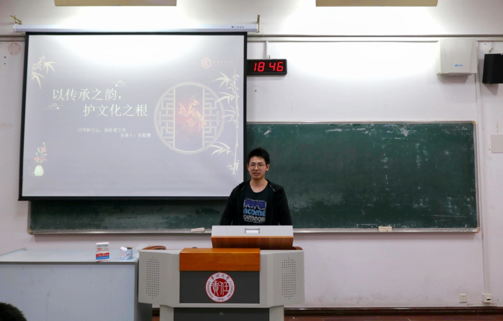 鄧玟婕從非遺的分類、價(jià)值、現(xiàn)狀與挑戰(zhàn)三方面展開,將“傳承非遺”作為情感共鳴和時(shí)代使命,強(qiáng)調(diào)了傳承非遺的重要性;張皓博重點(diǎn)講述了非遺的現(xiàn)狀轉(zhuǎn)型,包括跨界融合、3D掃描技術(shù)、科技賦能等內(nèi)容,呼吁同學(xué)們參與非遺保護(hù)活動(dòng),成為文化自信的踐行者,努力推動(dòng)中華優(yōu)秀傳統(tǒng)文化創(chuàng)造性轉(zhuǎn)化,為非遺傳承注入青春力量。