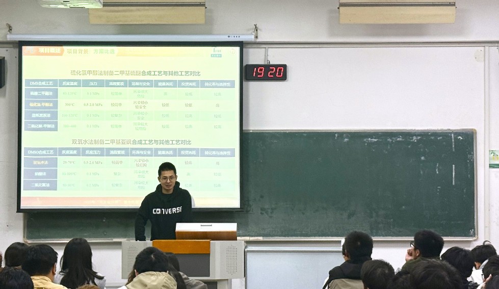 為幫助同學(xué)們拓寬專業(yè)視野、提升專業(yè)實(shí)踐能力,11月11日晚,“石化青年說”系列講座第二講在W1207教室順利舉行,講座由化工224班常佩源與化工226班張皓博兩位同學(xué)擔(dān)任主講。他們所在的常州大學(xué)“砜硫隊(duì)”,曾憑借“福建凱美特氣體有限公司分公司年產(chǎn)1.5萬噸二甲基亞砜項(xiàng)目”的出色設(shè)計(jì),在2025年“天正設(shè)計(jì)杯”第十九屆全國大學(xué)生化工設(shè)計(jì)競賽中脫穎而出,斬獲全國特等獎(jiǎng)。