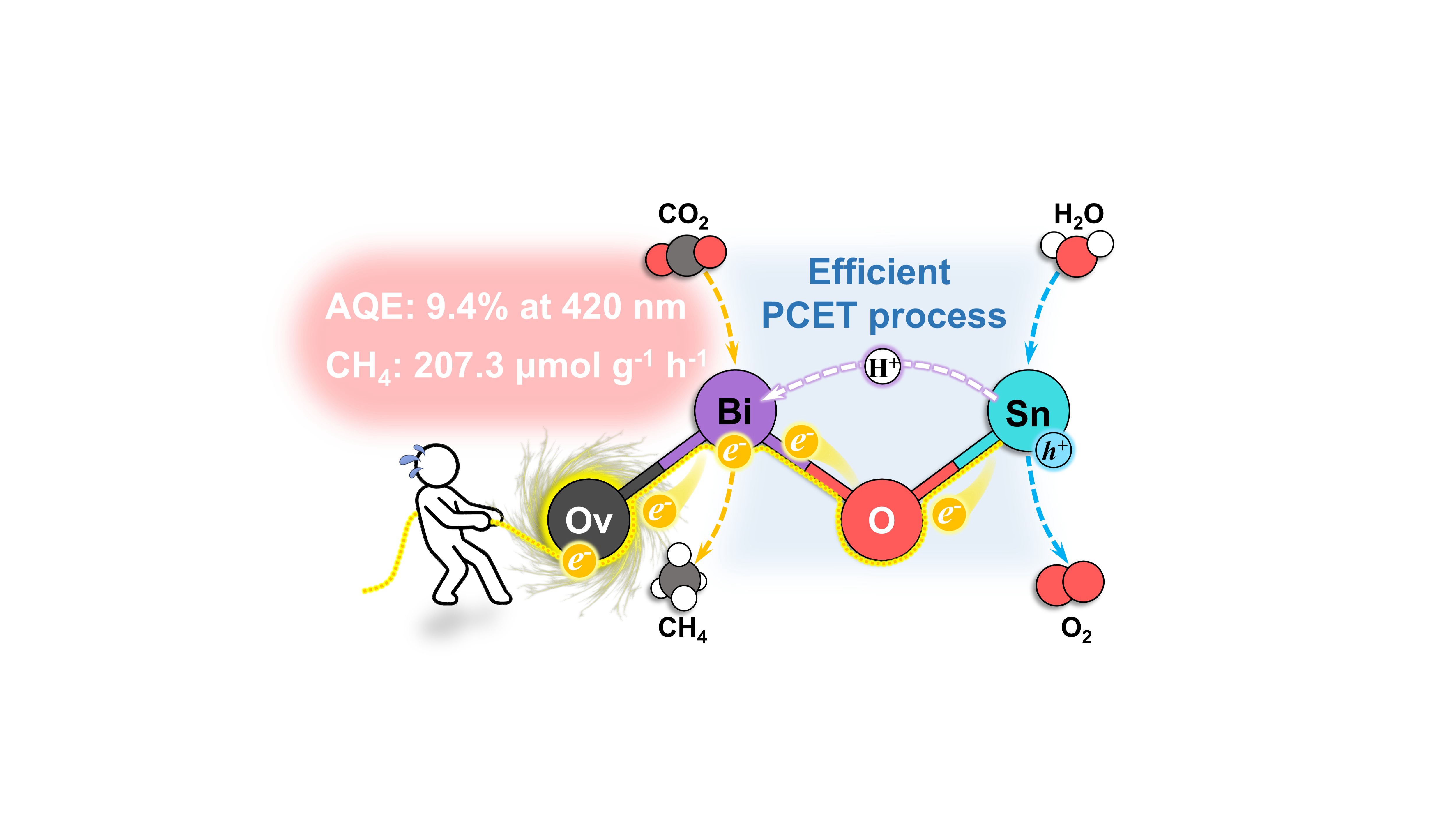 (1)通過氧空位誘導(dǎo)生成Bi-O-Sn氧化還原位點(diǎn),極大增強(qiáng)了質(zhì)子耦合電子傳遞(PCET)過程。該研究通過調(diào)控Bi的電子結(jié)構(gòu),優(yōu)化Bi 6p與*CHO 2p 軌道雜化,顯著降低了關(guān)鍵中間體*CHO的能壘,表現(xiàn)出卓越的催化性能,CH4產(chǎn)率達(dá)207.3 μmol g-1 h-1,選擇性為95.7%。相關(guān)成果以“Oxygen Vacancy-Driven Asymmetrical Charge Distribution on Bi-O-Sn Sites in Sn-Doped Bi2MoO6 for Efficient Photocatalytic CO2-to-CH4 Conversion”為題發(fā)表在Angewandte Chemie International Edition(Angew. Chem. Int. Ed. 2025, e21874)。