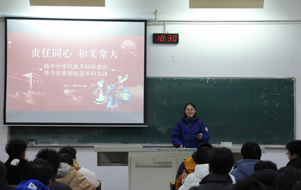 為了引導(dǎo)石化青年明確責(zé)任,并將個(gè)人成長(zhǎng)融入集體與學(xué)校發(fā)展,共同建設(shè)和美校園,12月16日晚,學(xué)生第二黨支部黨員能化234班王曦在W1203教室開展了“青年講師團(tuán)”系列講座第五講——“責(zé)任同心,和美常大”。