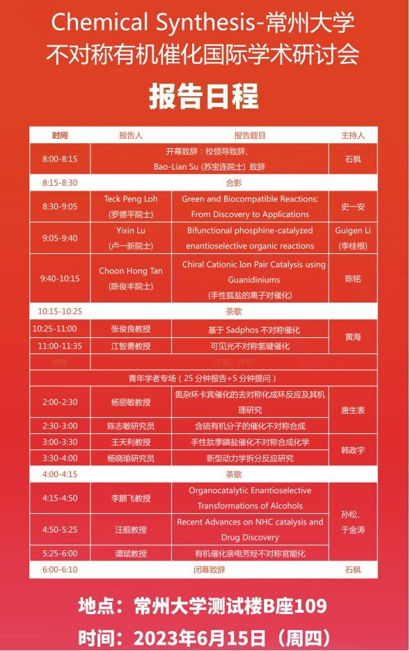 | 【學(xué)術(shù)會(huì)議】Chemical Synthesis-常州大學(xué)不對(duì)稱(chēng)有機(jī)催化國(guó)際學(xué)術(shù)研討會(huì) |