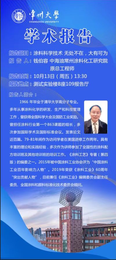 | 【學(xué)術(shù)報告】10月13日學(xué)術(shù)報告——涂料科學(xué)技術(shù) 無處不在 大有可為 |