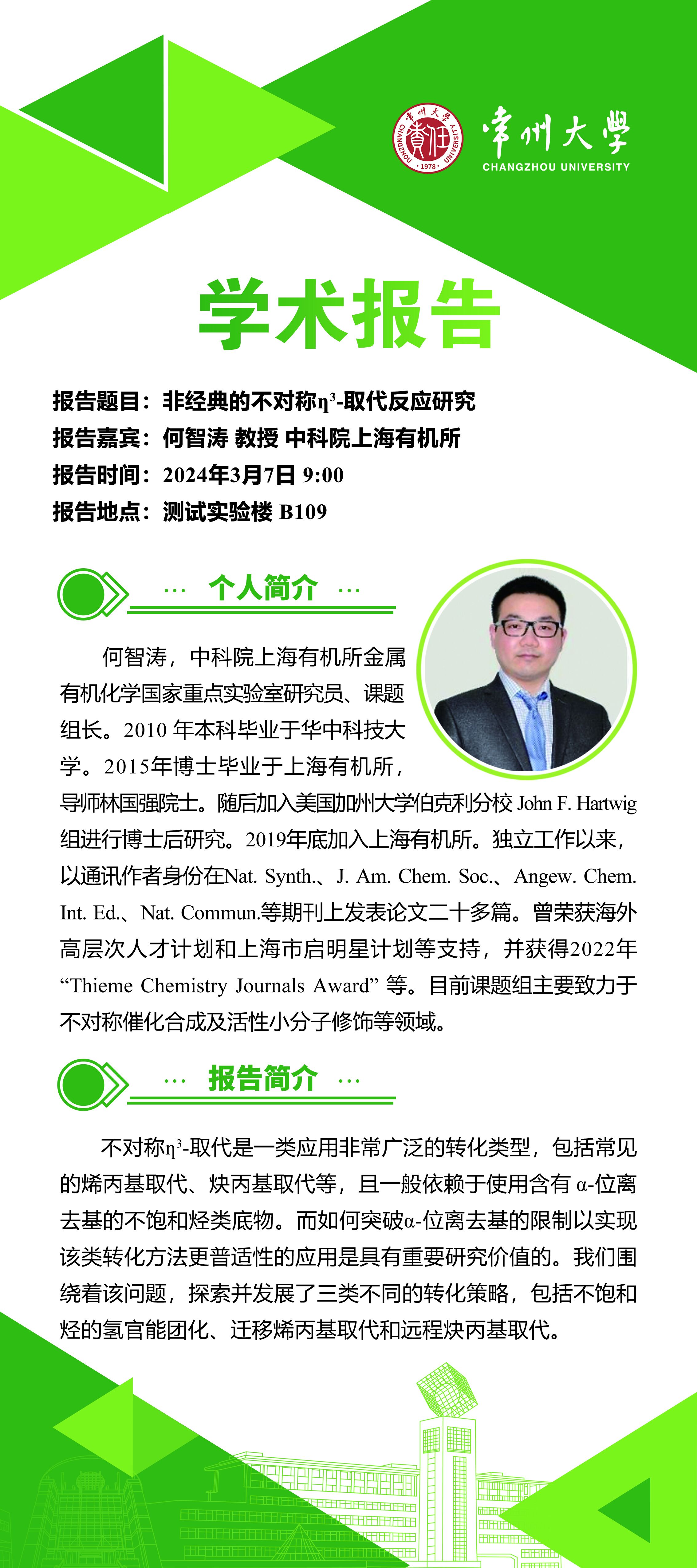 | 【學(xué)術(shù)報(bào)告】3月7日學(xué)術(shù)報(bào)告-何智濤教授-中國(guó)科學(xué)院上海有機(jī)所 |
