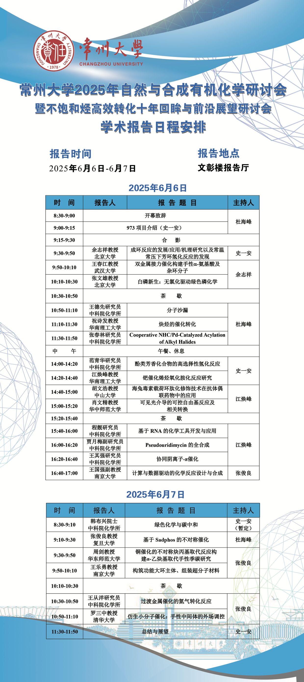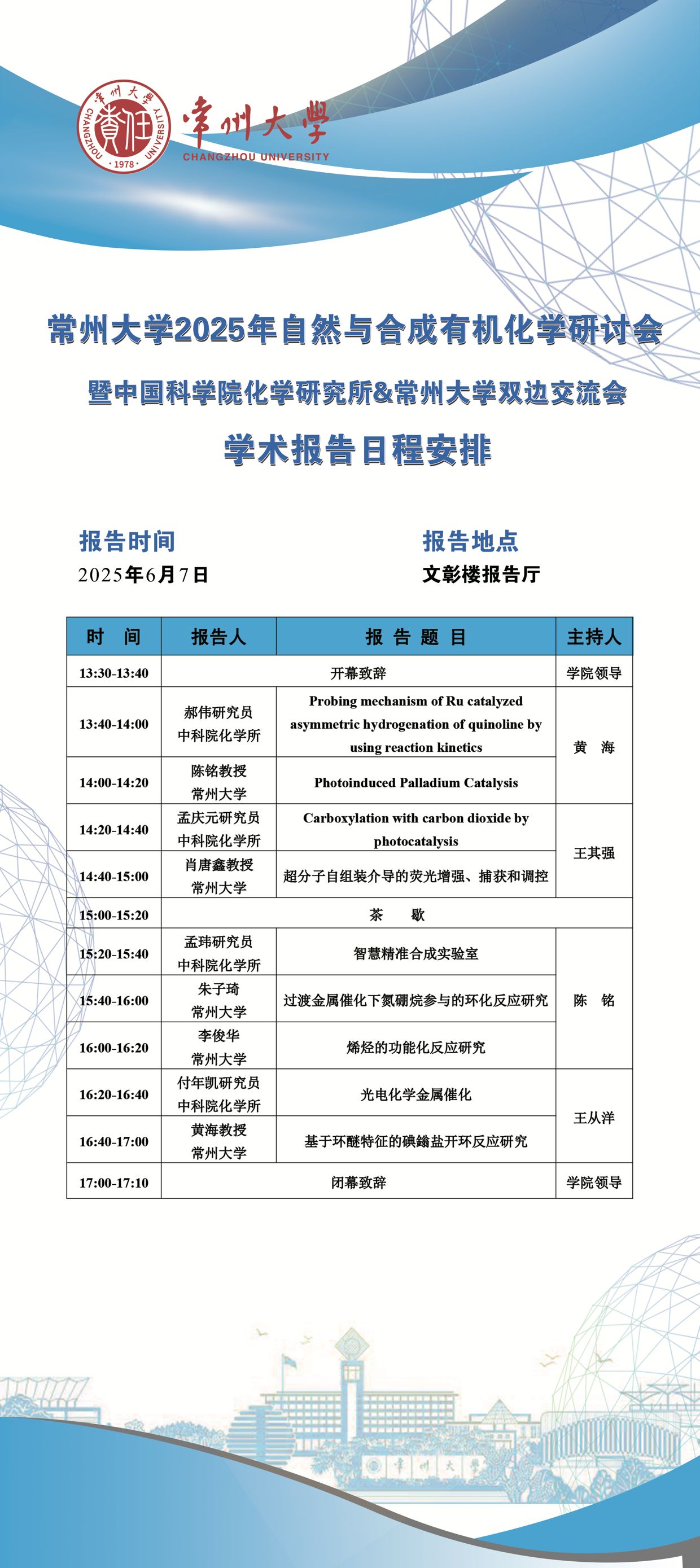 6月6日-7日(石化學院)常州大學2025年自然與合成有機化學研討會