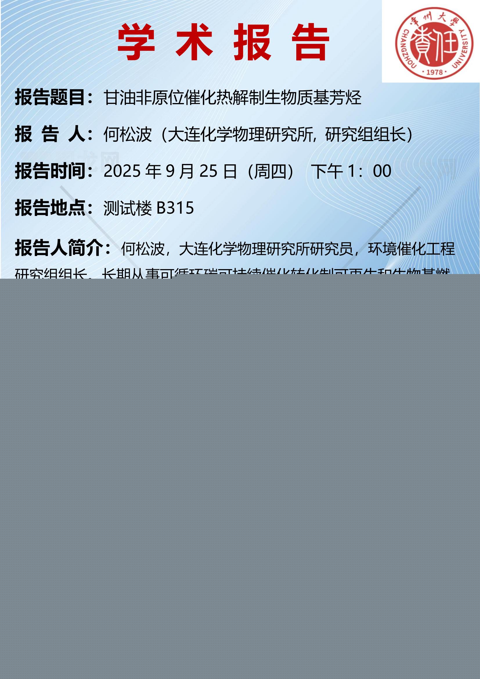 【學術報告】9月25日甘油非原位催化熱解制生物質基芳烴