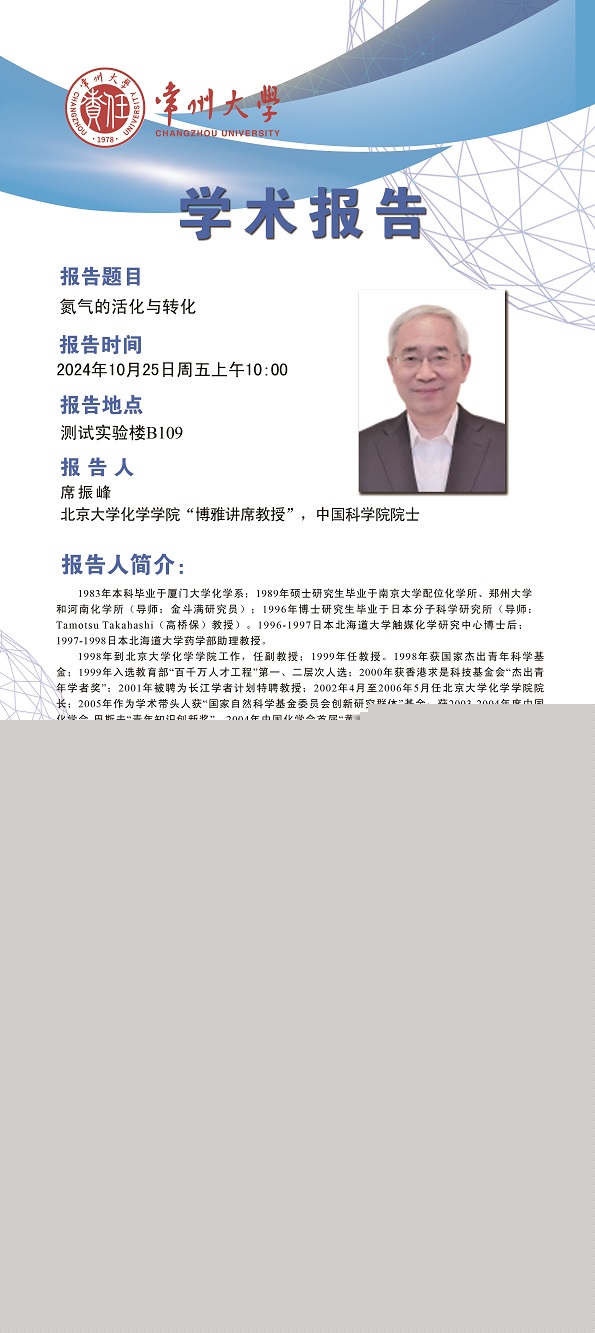 【學(xué)術(shù)報告】10月25日學(xué)術(shù)報告——席振峰院士,北京大學(xué)